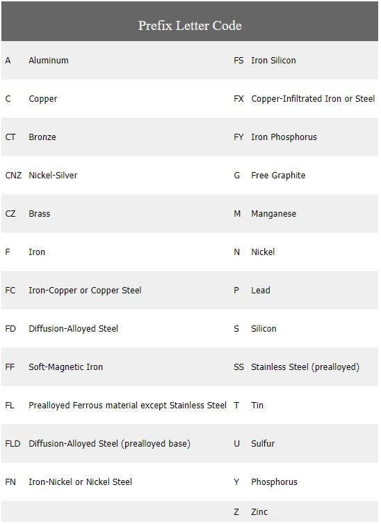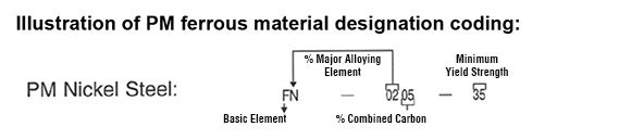 As with other PM materials, the suffix number denotes the specified minimum strength value expressed in 103 psi.