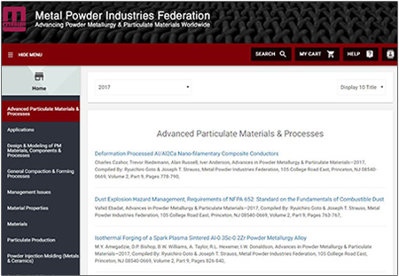 The MPIF Digital Library is available for the entire PM industry. It contains thousands of technical manuscripts from MPIF technical conferences dating back to 1946 in a completely searchable database. The library allows users to download individual papers instead of requiring the purchase of an entire conference proceeding. Search options are available by title, author, keyword, publication type, categories, or copyright year.